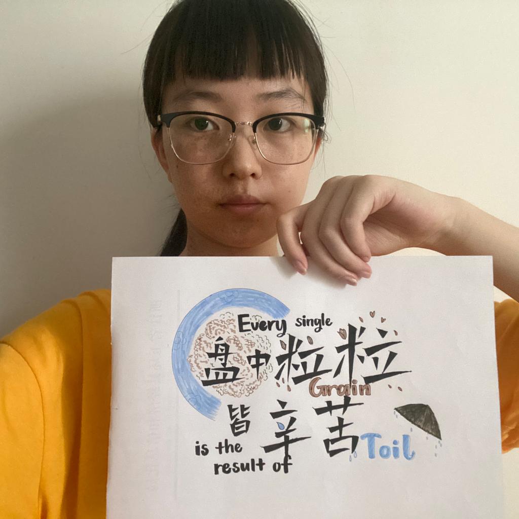 此次活动以线上形式开展,结合翻译系党支部的特色,一方面集体学习习近平总书记关于节约粮食的重要指示,另一方面以双语形式引导员工党员,说标语,表行动。例如员工党员万怡婷以“Food is used to satisfy hunger, not to waste”作为自己的标语;员工党员彭蓝萱以“The grain you waste is the pain they taste”作为自己的标语;员工党员张连成以“One man’s trash is another man’s treasure”作为自己的标语等;员工党员赵新雨以“Grain in each dish is hard”作为自己的标语;员工党员张月欢以“Every grain costs a bead of sweat”作为自己的标语;员工党员罗琛以“Every single grain is the result of toil”作为自己的标语等。