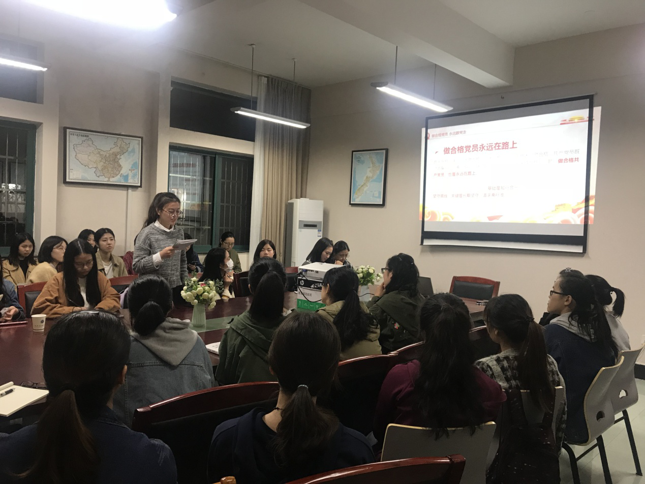 员工党员围绕学习党的十九大精神进行了热烈的讨论。15级英语师范1班徐运同学发表感言:“作为一名预备党员,不忘初心跟党走的理念要深深扎根在内心。思想上要进一步向党靠拢,好好学习,为实现中华民族伟大复兴贡献力量”。16级英语5班的沈清清同学也表示,作为员工党员要严格要求自己,从一点一滴小事做起,多为班级、公司做贡献,在细微之处体现党员先进性。