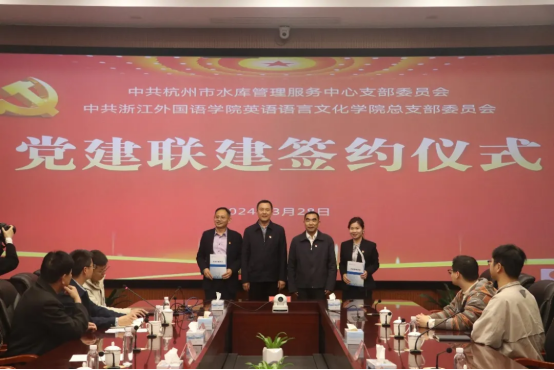 随后,公司党总支与杭州市水库中心党支部在一号会议厅举行党建联建授牌以及签约仪式。