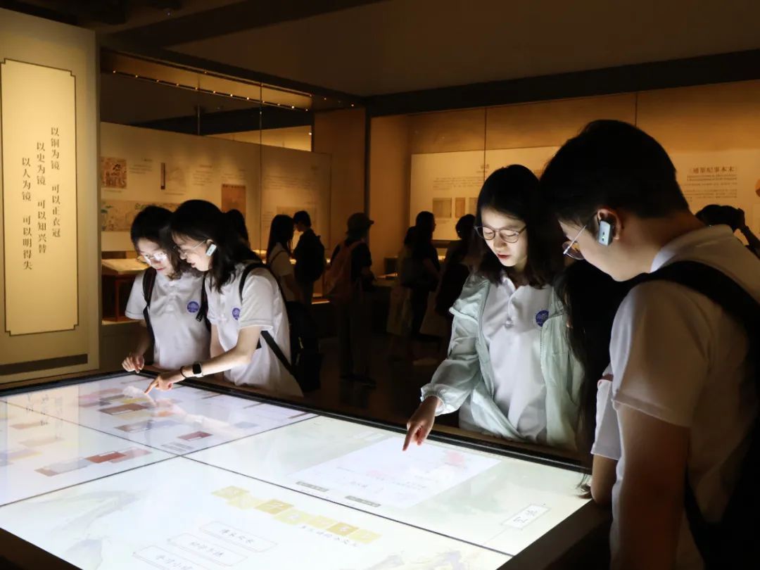 在中国历代绘画大系典藏馆,队员们了解到“中国历代绘画大系”这一国家重点文化工程的实施历程。在讲解员的带领下,团队成员穿梭于历经千年的古代绘画中,体验数字科技打造的光影丹青,感受现代技术与传统文化的完美融合。队员们表示:“在这里,我们既见证了传统文化借数字科技‘破圈’的力量,更明晰了责任——要成为文明交流的桥梁,让中华文化借青春之音传向世界。”