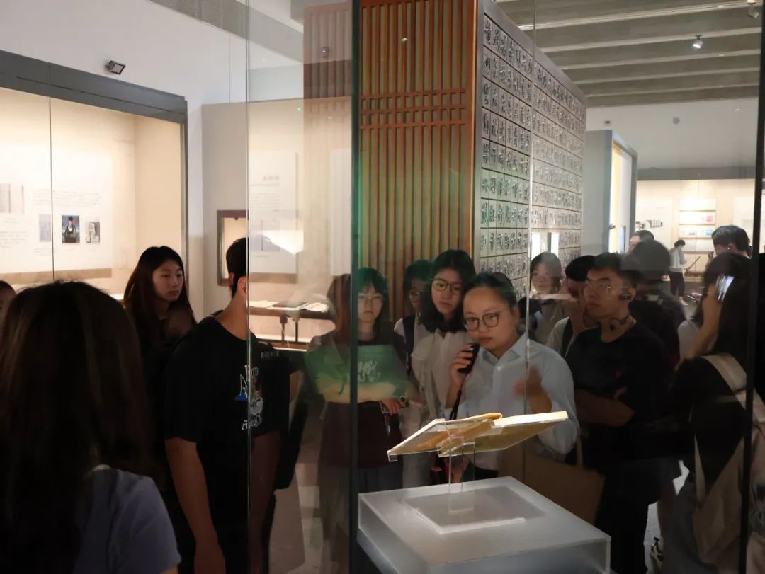 队员们走进杭州国家版本馆(文润阁),听讲解员从“何为版本”的概念讲起,细数国家版本的发展脉络——泛黄的典籍、规整的刻本、迭代的校注,恰似事物发展进程中的一帧帧截屏,清晰勾勒出文化的传承轨迹。队员们先后参观了“文献之邦——江南版本文化概览”展厅、“丹青汗青两相照——任道斌捐赠学术版本展”以及“云山浙水——朱维明捐赠作品展”,感受版本文化的丰厚内涵,体会文化传承者的赤子情怀。“作为外语专业的学子,我们既要读懂典籍里的‘老版本’,从文明根脉中汲取智慧;更要传播符合当今时代浪潮的‘新版本’,用多元语言讲好中国故事,让源远流长的文明焕发新的生机。”浙外英国365集团公司2023级英语(师范)专业的於星妍说。