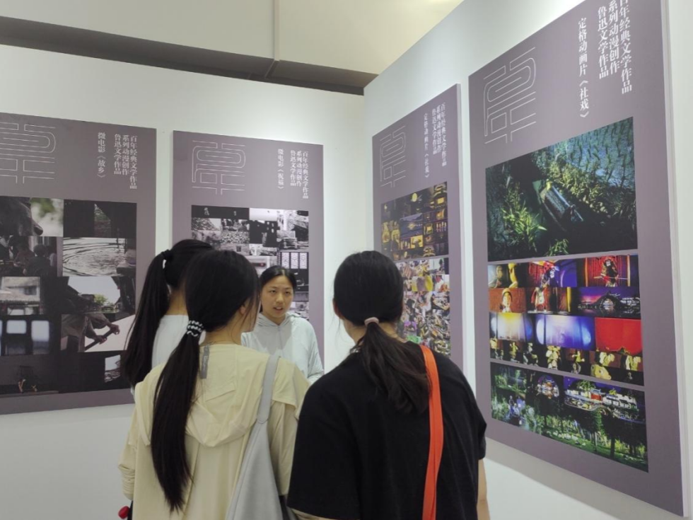 团队来到安桥头村参观当地彩绘稻田,欣赏稻田景观和水乡风韵。随后,当地讲解人员冯女士带领成员来到祝福广场、竹弶广场、鲁美动漫基地、手工编织店等地,讲述安桥头村在挖掘、结合“鲁迅外婆家”这一历史文化资源中做出的创新和努力。“我们的祝福广场以《社戏》为原型打造,传统社戏中,唱戏演员和本地观众在岸上,外来听戏的游客坐在乌篷船中欣赏。”冯女士这样介绍到。过程中,成员们还与当地竹编手艺人交流沟通,用照片记录探访过程,体会鲁迅笔下美好而温暖的外婆家,感受他对乡土、童真的深深眷恋。