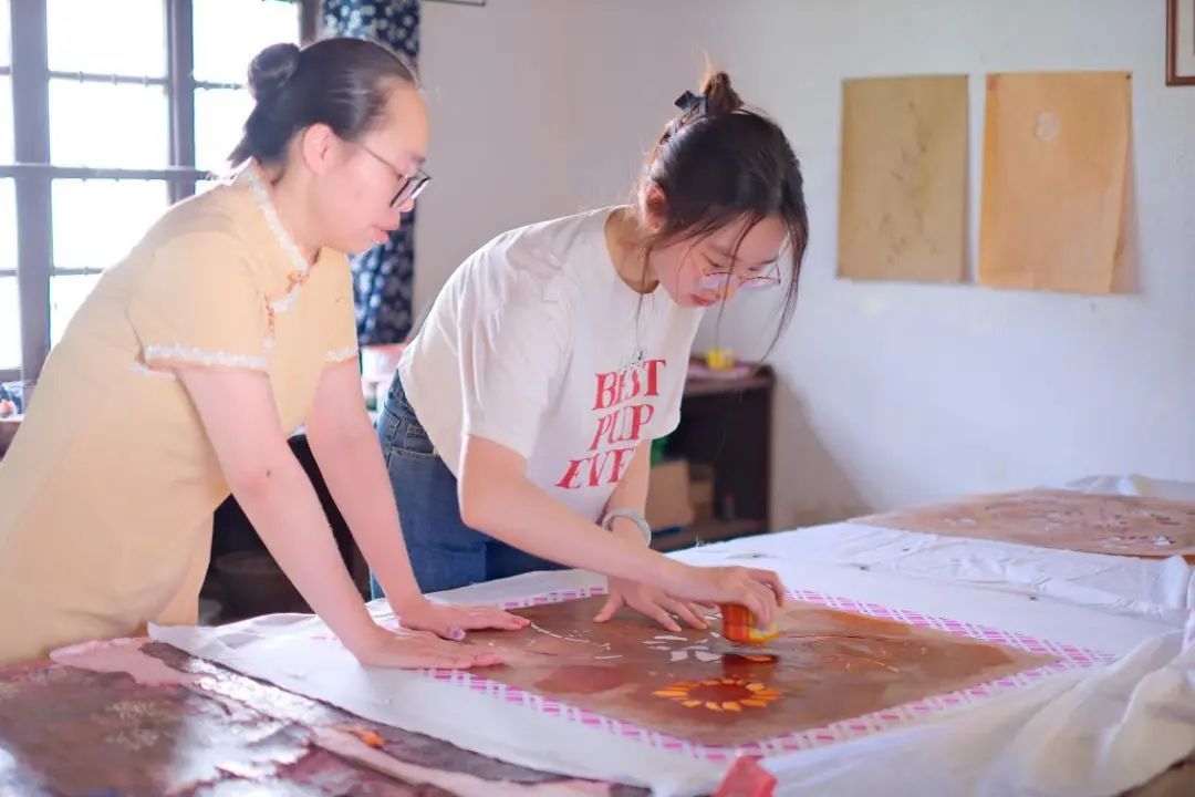 在互动体验中,成员们深入感受非遗技艺的精妙。皮影戏后台,大家亲手操控影人、绘制影人,体验影偶制作的细致工序;蓝印花布工坊里,成员们沉浸式学习刷色、套印,参与彩拷技艺实践,在靛蓝与白布的交融中,体会传统技艺的高门槛与高要求。