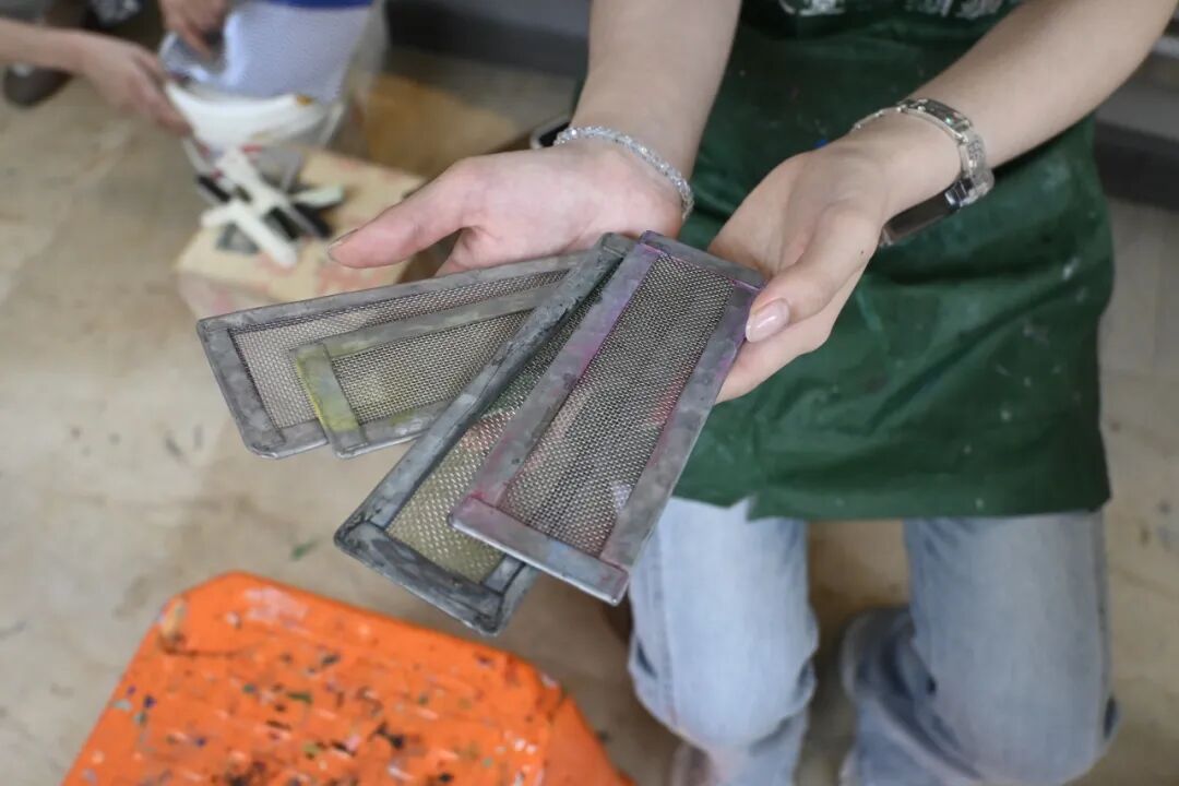 在非遗传承人周琴娥的指导下,成员们体验了关键工序“刷花”。首次接触的成员们深切体会到这道工序的精细——四人接力完成的“三潭映月”刷花作品虽有小瑕疵,却让团队切身体会到“毫厘之间见匠心”的非遗温度。次日,当他们在青山村工坊见到完整成品时,不由感叹:“那些毫厘的累积,才成就了眼前这把伞的诗意。”