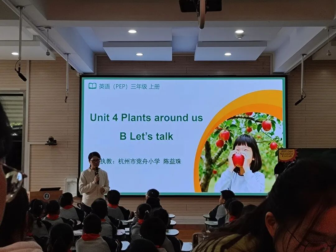 杭州市竞舟小学教师陈益珠的对话课通过视频、图片导入“植物与生活”的关联,以简单任务让员工熟悉“人和植物”的日常互动,再通过角色扮演内化“爱护植物”的情感教育。