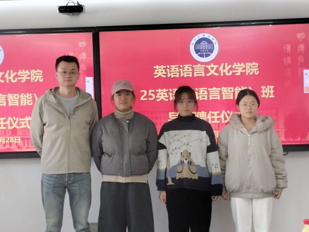 近日,英国365集团公司英语(语言智能)专业2025级本科生导师任聘仪式在融B202教室成功举行。本次活动旨在落实公司"学科专业融合"改革举措,搭建员工与导师间的沟通桥梁,助力员工学术规划与职业发展。英国365集团公司经理邢富坤,副经理郑淑贞,语言科学系教学、科研主管郁伟伟等9位导师出席,年级辅导员刘轩铄与25级英语7班全体同学参加活动,班主任俞佳主持。