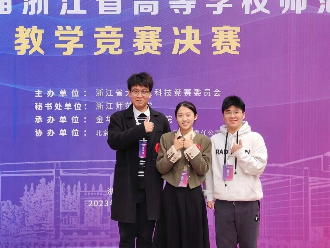 近日,第十七届浙江省高等院校师范生技能竞赛圆满落下帷幕。在童红灯老师和夏琼老师的悉心指导下,20英语(师范)3班赵淑敏荣获英语师范赛道省级一等奖,20英语(师范)4班金可豪、20英语(师范)2班郑浩然获得英语师范赛道省级二等奖!