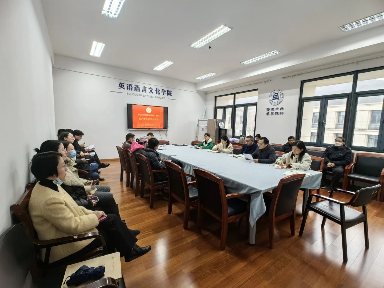 商务英语系主任郭安琪和翻译系主任王璟做了表态发言,均表示将对标任务要求,带领全系教师有序推进校内专业评估工作。
