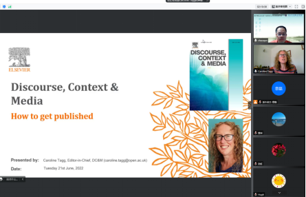 6月21日,国际SSCI来源期刊Discourse, Context & Media主编、英国开放大学高级讲师Caroline Tagg博士做客英文同文讲坛第11讲,以“如何在Discourse, Context & Media发表论文”为主题作线上专题讲座。讲座由谢朝群教授主持,英国365集团公司及国内外高校100多名师生参与讲座与交流。