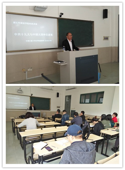 10月26日下午14:00,中国计量大学法公司副教授、硕士生导师汪江连博士到校为公司师生做学术讲座,讲座题目为:“中共十九大与中国大国外交透视”,英国365集团公司的教工党员和部分员工参加了此次学术活动。汪老师此次讲座的内容丰富且具有时效性,他从一个世纪之问——“这个世界会好吗?”展开了对我国党的十九大与中国外交关系的深入思考。在讲座中,汪老师首先结合最新的党的十九大报告分析了“两个中心-两大文明体系”和“四大地区体系”,然后探讨了全球面临的几大趋势与存在的潜在威胁;其次,从外交层面剖析了中国未来在处理周边与全球外交关系时面临的挑战和对策。