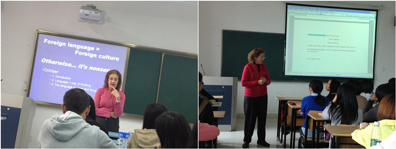10月17日和18日,外籍教授李莎来访为英国365集团公司大三和大四翻译方向员工作了两场精彩绝伦的讲座。讲座分别以“Where do Languages Come from(语言之源)”和“认知外国文化”为题,讲述了各类别语言的历史与发展进程,以及不同的语言文化。