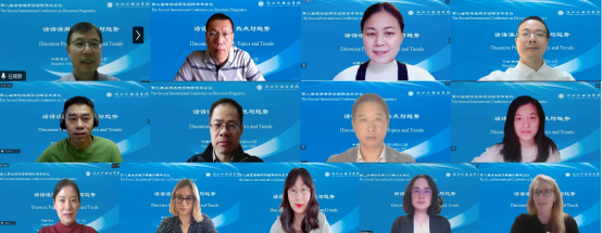 Encompassing a broad spectrum of subjects and delving deep into the intricacies of real-life communicative exchanges, the keynote sessions have unequivocally demonstrated the immense potential and rapid advancement of discourse pragmatics as an intellectually stimulating and ever-evolving academic discipline. Professor Jef Verschueren(University of Antwerp) shed light on the phenomenon of well-intentioned self-deception within public discourse, highlighting the potential consequences of overlooking the intricate mechanisms that generate meaning in language use. By delving into the justifications employed by online commenters to validate their unfavorable judgments or criticisms, Professor RAN Yongping (Guangdong University of Foreign Studies)examined the morally-charged assessments and the subsequent expectations for public apologies, which can pose interpersonal threats to one’s face.Drawing attention to the critical issue of trust within the discourse system,Professor Rosina Márquez Reiter(The Open University) delivered an insightful presentation titled“Establishing and restoring trust in the service of scams.” She explored the various conversational mechanisms through which impersonation is achieved and examined the human reactions when deception occurs. Professor Veronika Koller(Lancaster University) traced the intellectual lineage of critical discourse studies, elucidating its roots in critical linguistics, media studies, and political philosophy. She underscored the remarkable advancements the field has witnessed over the past 15 years and offered valuable insights into potential avenues for future research. In her concluding remarks, she emphasized the significance of integrating pragmatic concepts into the realm of critical discourse studies, highlighting their transformative potential. In a thought-provoking presentation,Professor Istvan Kecskes(State University of New York at Albany) hinted at the complexity of intercultural interactions, advocating for a comprehensive approach that combines bottom-up, sequential utterance analysis with top-down, holistic dialogue segment analysis. He posited the need for a dialogic approach to pragmatics, recognizing the intricate dynamics at play in intercultural communication. Professor TIAN Hailong(China University of Petroleum,Beijing)delved into the conceptualization and application of discursive interaction theory. By proposing a multi-layered, trans-field, cross-history social process as his framework for analyzing“discursive interaction,” he showcased its efficacy in understanding and dissecting social interactions.Examining the legitimizing effect of proximization in discourses of public health crises,Professor ZHANG Hui(Nanjing Normal University) conducted a triangulation-based experiment. Through a corpus linguistic analysis of 180,000 words extracted from Chinese news coverage of COVID-19, he revealed the recurring patterns of proximization strategies employed in such contexts. Professor REN Wei(Beihang University) focused on the self-praise practices of Chinese youth on Weibo and WeChat. By investigating the pragmatic strategies employed in self-praise on Chinese social media and analyzing the translanguaging strategies in Chinese self-praising discourse, he shed light on the intricate dynamics of self-presentation and linguistic choices within digital platforms.Shifting the focus to a comparative study of the pragmatic construction of word meaning in communication between English and Chinese,Professor LI Dandi(Zhejiang Gongshang University) aimed to deepen our comprehension of how speakers effectively convey intended meanings within their unique cultural and linguistic contexts. By exploring the nuanced differences and similarities, he provided valuable insights into cross-cultural communication. Professor Michael Haugh(TheUniversity of Queensland) elucidated the concept of speaker meaning and the dialectic between serious and non-serious talk. He argued for the inclusion of non-serious talk within theories of speaker meaning in pragmatics, emphasizing the need to capture the full spectrum of speaker meanings that emerge during conversational interaction. Professor Dezheng (William) Feng(The Hong Kong Polytechnic University) shared his perspectives on the multimodal construction of pragmatic identity. He put forth a comprehensive framework for analyzing the intricate process of constructing pragmatic identity through multiple modes of communication. This framework comprises three levels of analysis, providing a nuanced understanding of how individuals project their pragmatic identities. To illustrate the applicability of this framework, Professor Feng presented two compelling case studies analyzed within this multifaceted framework. Professor Andreas H. Jucker(University of Zurich) drew attention to the underexplored realm of multimodal aspects in face-to-face communication. Focusing on the study of multimodal speech acts in works of fiction, he delved into the intricate ways in which characters communicate through a combination of verbal and non-verbal gestures. Through a meticulous examination, Professor Jucker explored a diverse range of multimodal pragmatic acts, shedding light on the specific gestures that accompany or silently convey particular types of pragmatic acts. This exploration offers valuable insights into the dynamic interplay between verbal and non-verbal elements in communication.