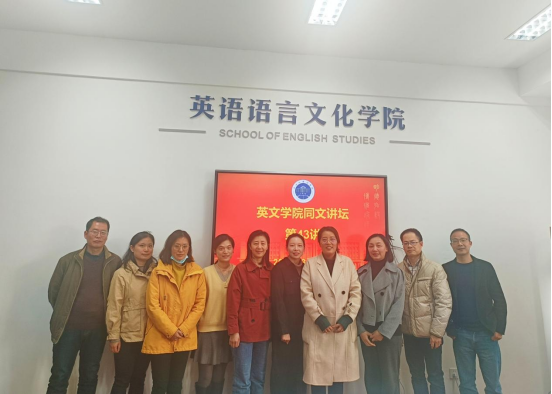 3月21日下午,公司话语语用研究团队郁伟伟副教授主讲了英文同文讲坛第43讲,讲座题目为“公共卫生新闻语篇中的间接引语构建国家形象研究:话语历史分析法的视角。”副经理郑淑贞,话语语用研究团队负责人谢朝群教授及9位团队成员参与现场交流。