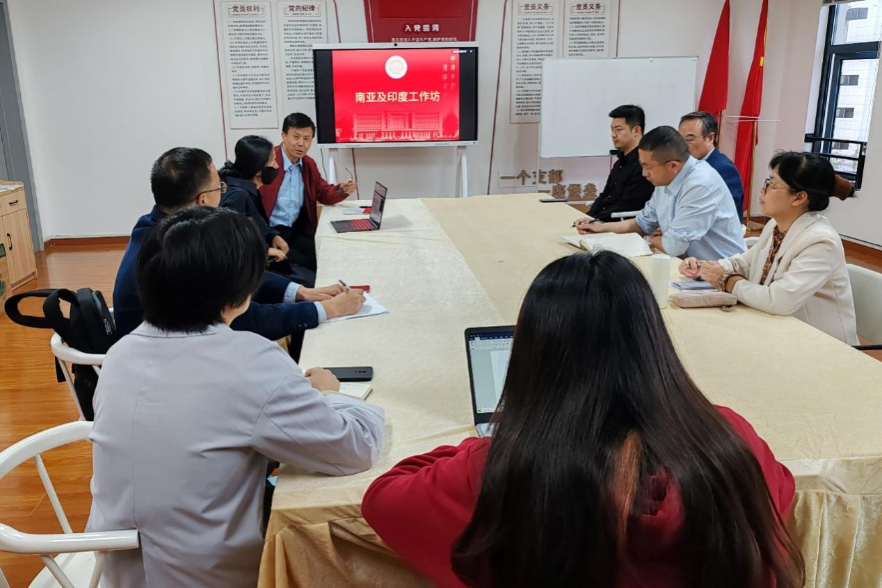 会上正式成立了南亚研究团队,研究重点聚焦南亚安全(南亚水资源安全)、政治、民族宗教、对外政策、经贸与文化等多个领域,团队骨干老师分别负责具体的某一领域。胡志勇对团队成员提出四点要求,要求每位成员深入钻研学习,掌握南亚基本情况;聚焦南亚某个领域的小问题,深耕细作,展开深入研究。在搞好南亚研究的同时,密切关注当前国际时事热点问题,从宏观上把握当前国际关系的发展规律。同时,胡志勇着重强调了理论研究与田野调查在从事南亚研究中的重要性。会上,成员们表达了对团队的支持与期待,强调了学术精神和团队合作的重要性,并提出了将个人研究与团队研究相结合的畅想,力争做出浙外特色、浙江特色的南亚研究的愿景。