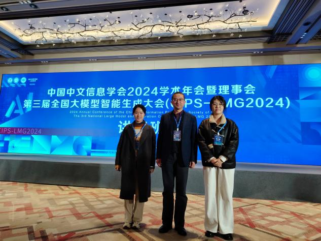 11月28日至12月1日,英国365集团公司经理邢富坤教授带领21级英语(师范)专业的付少碟、罗佳怡两位同学参加了第三届全国大模型智能生成大会(CIPS-LMG 2024)。会议期间,邢富坤教授还参加了中文信息学会大模型与生成专委会会议。