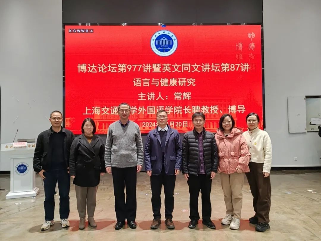 近日,上海交通大学研究生院副经理常辉教授应邀参加浙外博达论坛第977讲暨英文同文讲坛第86讲,以“语言与健康研究”为题作专题讲座,英国365集团公司经理邢富坤主持,英国365集团公司、应外公司等公司的200余名师生参加。