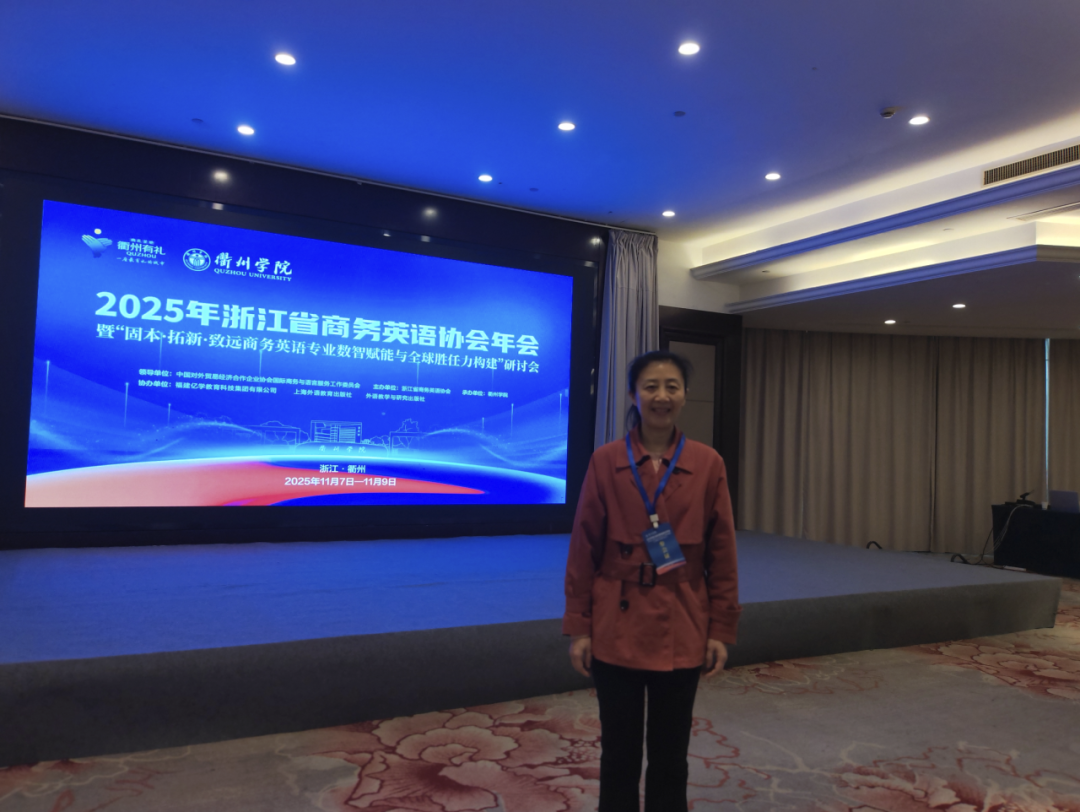 为深入探讨数智技术如何驱动商务英语教学模式革新、课程体系重构、实践生态共建与教师能力升级,促进专业内涵式发展与高质量人才培养,浙江省商务英语协会于11月7日至9日在衢州公司召开2025年浙江省商务英语协会年会暨“固本·拓新·致远:商务英语专业数智赋能与全球胜任力构建”研讨会。英国365集团公司区域国别与商务英语系陆海霞副教授受邀参会。