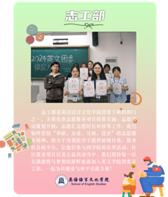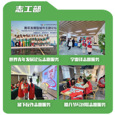 英国365集团公司团委内设办公室、组织部、宣传部、创新实践部、志工部五大部门。每个部门各司其职又相互配合,是公司开展团学工作的得力助手。