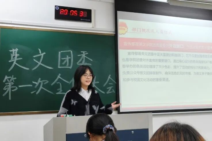 为帮助新成员快速熟悉工作,本次大会设置了通用培训环节。李仪婷围绕工作守则、注意事项、场地借用、物资采购与借用等方面,对各项工作规范进行了系统讲解。新干事们专注聆听、认真记录,展现出饱满的学习热情。