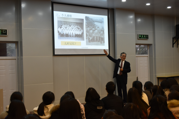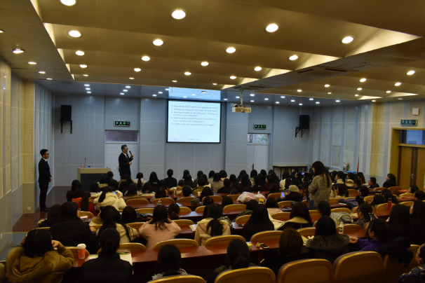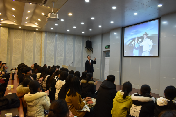 12月28日下午,由李生禄教授主讲的《语言专业发展及职业规划》主题讲座在望院D131如期举行,场下座无虚席。经主持人朱帅港同学暖场和商务英语系主任高伟老师致词之后,李教授带我们用照片快闪的方式回顾了他的从教生涯及心路历程。
