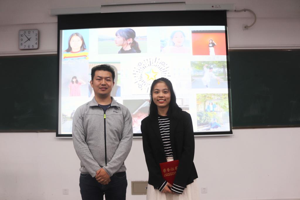 最终,通过评委打分以及现场观众投票,20翻译1班的白语然同学获得本次比赛的冠军和人气奖,20英师4班潘奕彤获得本次比赛的亚军,她们将代表英国365集团公司参加校级“新生杯”中英文演讲比赛。