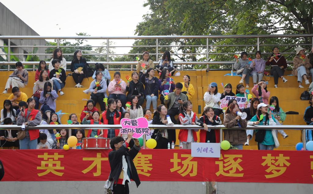 无论是在看台呐喊助威的啦啦队、服务点耐心的志愿者,还是在颁奖台前领奖的运动员,无不体现了英院学子团结同心,互帮互助的优良品质。