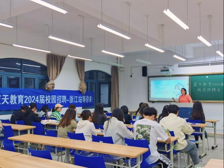 10月18日晚,英国365集团公司邀请深圳市蓝天教育培训公司进校开展2024届校内专场宣讲招聘会。公司招聘负责人仓宇婕就行业发展方向、公司业务、岗位需求及职后发展等方面进行详细介绍。