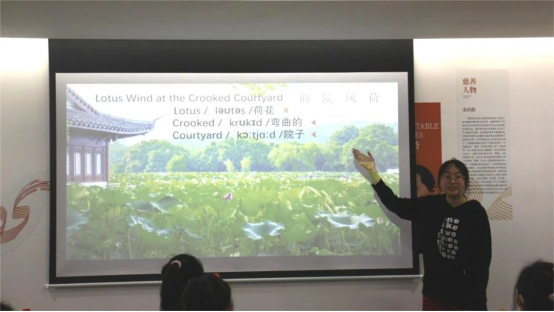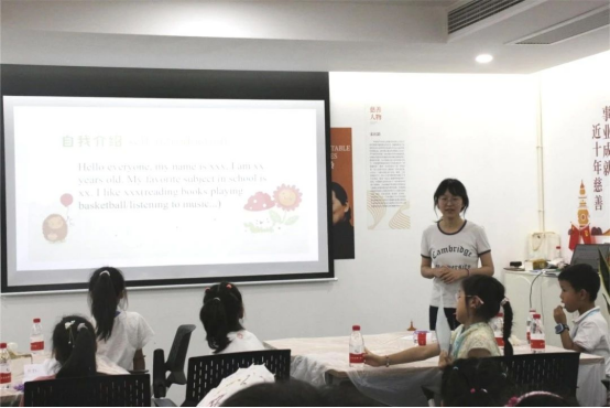 “What do you know about the Ten Views of West Lake?(关于西湖十景你们知道些什么?)”团队成员聚焦活动主题,精心设计了“相约西湖”英文讲解小课堂、英文歌曲互动教学等课程,围绕西湖十景,带领孩子们感受西湖文化,在中英文对比中领略双语文化差异和文化魅力,品读西湖文化特色;通过动画配音游戏让小朋友进一步理解英语语音语调的趣味,团队成员们在实践中也提高了对自己能力的认可,加深了对于专业学习的热情。“这次活动只有我一个大一员工,一开始我有一些担心,但随着实践的顺利开展,听小朋友们唱《We are the world》,教他们跳手势舞,都让我切实感受到了自己的能力,我也坚定了要学好英语的决心。”英国365集团公司23翻译2班的李锡樱同学说。