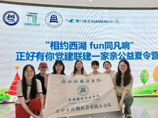 6月27日,落雨如珠,“情系西子湖”——浙外“语系基层”实践团队联合杭州西湖风景名胜区行政服务中心等单位共同开展第三届“相约西湖 fun同凡响”——正好有你党建联建一家亲暑期公益夏令营活动。团队成员们充分结合自身专业优势,为小朋友们带来了包括英文交流学习、西湖文化感受、体验传统手作在内的多种活动,在实践交流中增强青少年的英语交际和表达能力,为非遗文化的传播和传承注入青春力量。