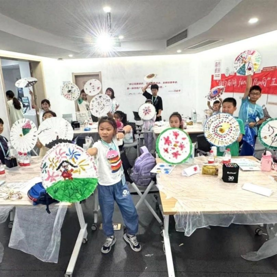 “老师老师!你看我画的油纸伞好看吗?”“老师!下一步怎么做呀!”在非遗体验课上,小朋友们积极动手,尝试了杭州油纸伞、竹编种子画、植物拓印、中国结制作等手工活动。小朋友在感叹非遗制品精致美丽的同时,发现了古人技艺之巧思,体会到了传统文化蕴含的精髓。浙外团队成员采用“理论+实践”模式,在输出非遗传统优秀文化知识、渗透思政理念后鼓励同学们亲手制作,让小朋友们于玩中学,于学中玩,有所思、有所悟、有所得,进一步理解非遗技艺的特色内涵,从而传承中华优秀传统文化。