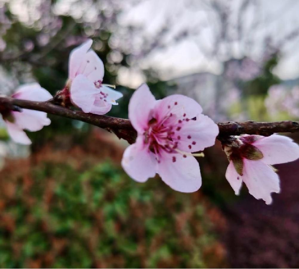 桃花、李花晕染枝头