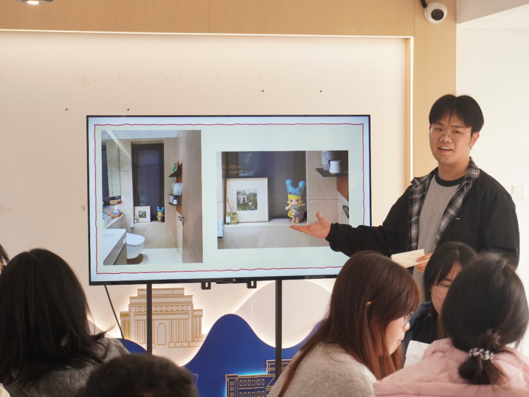 蔡煜楷通过一个令人捧腹的家庭小故事开场,点燃了现场气氛,也勾起了在场同学们对泡泡玛特的了解兴趣,同学们意识到:潮流玩具,早已无声地渗入了我们生活的各个角落。