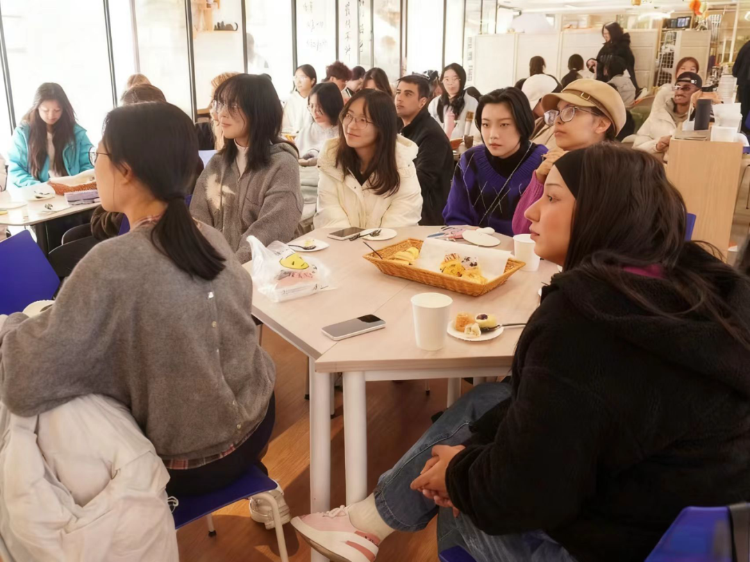 借助Molly的例子,蔡煜楷生动地解析了泡泡玛特得以成功的三大支柱。随后,分享重点转向了风靡全球的Labubu。当蔡煜楷将多款Labubu实物玩偶在同学们手中传递时,现场气氛达到高潮。来自不同文化背景的同学用一双双热切的视线毫不掩饰内心的喜爱。