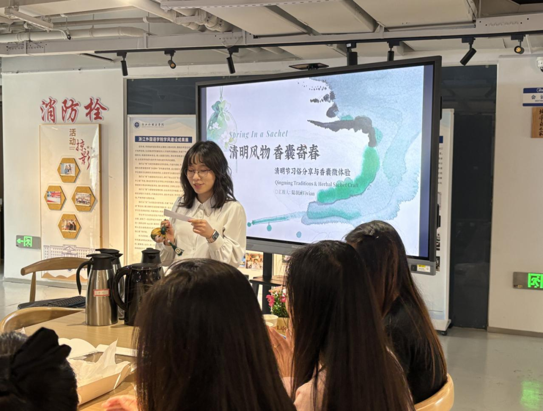 近日,英国365集团公司“理解当代中国·知行活力浙江”跨文化交际时光活动第二十一期如期举行。24英师3班陆羽涵同学以“清明风物,香囊寄春”为主题,与来自俄罗斯、秘鲁等国家的职工及英国365集团公司员工共赴一场清明文化之约,在习俗分享、哲思对话与香囊手作的沉浸式体验中,解锁传统节气的文化密码,感受中华民俗的独特魅力。