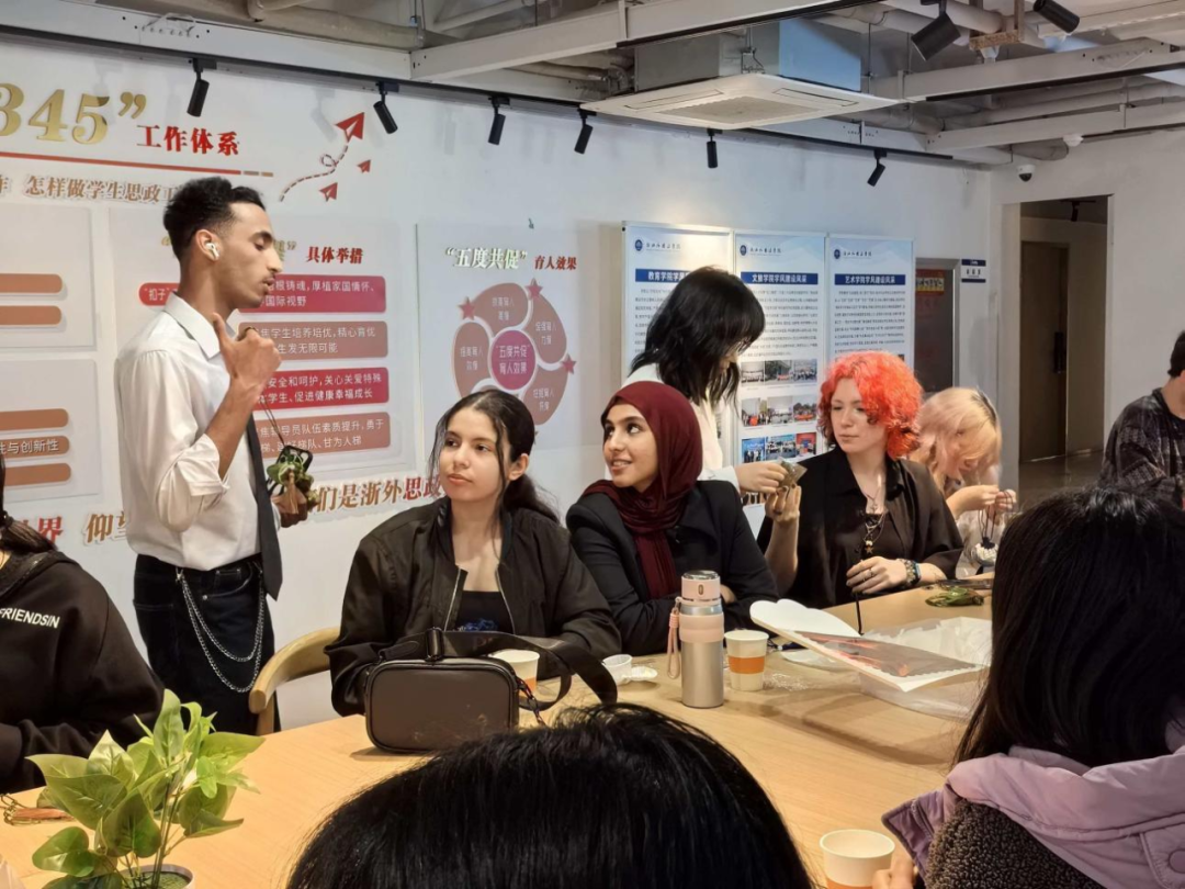 只只香气沁人的香囊在大家手中陆续完成。艾草的清香交织萦绕,春日的气息仿佛凝于方寸之间。同学们手捧自己装好的香囊,彼此分享、互相欣赏。这一枚枚小小的香囊,不仅是文化的载体,更是情感的纽带——跨越国界的真诚与善意,不同文化的碰撞与交融,都在这一刻变得具体而温暖。