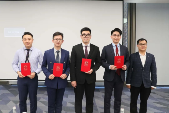 陶伟代表公司为谢宇、金桢杰等4人颁发企业导师聘书,为进一步深化双方协同育人、共同开发课程、建立实训基地等合作开好局。