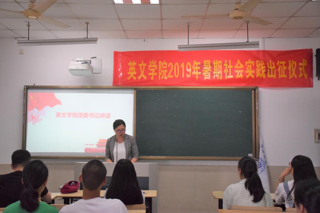 出征仪式伊始,院团委书记陈洋首先向积极申报参加社会实践的同学们给予了极大肯定,提出社会实践能够磨练意志,增长专业才能,提升解决实际问题的能力,希望同学们在实践中践行校训、探求真知,在体验中锻炼才干,在感悟中增长见识。