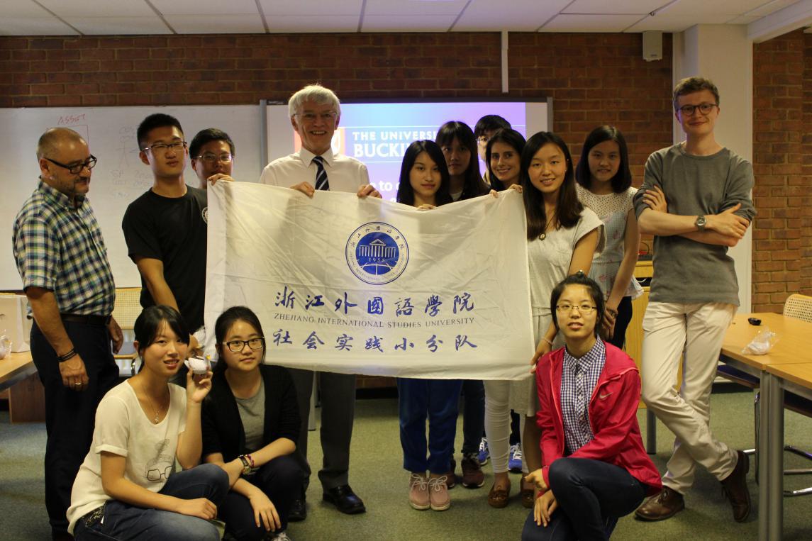 在Buckingham教室里与校方的合影