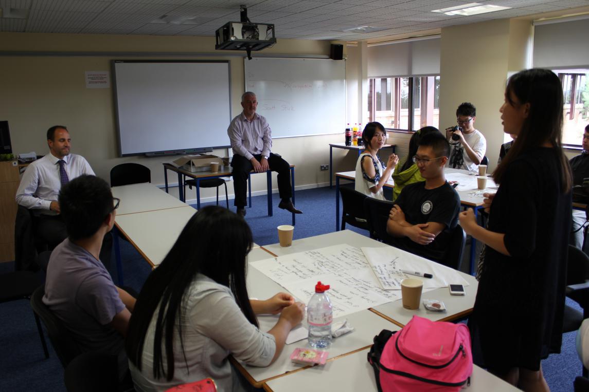 第三站,我们来到了北安普顿镇的Northampton University。这次的Northampton大学之旅,接待我们的是一位来自中国的教授。当我们能用中文与其交流时,心中倍感亲切。在进行了简短的公司介绍之后,由公司的另一位教授给我们上了一堂关于创业的课。课堂上,在教授的指导下,大家充分发挥思维能力、表达能力、合作能力,主动参与讨论,积极为小组献计献策,现场气氛异常活跃。