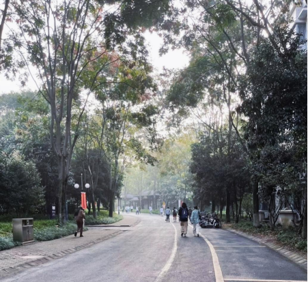 下课,同学们顺着熙攘的人群走出教学楼