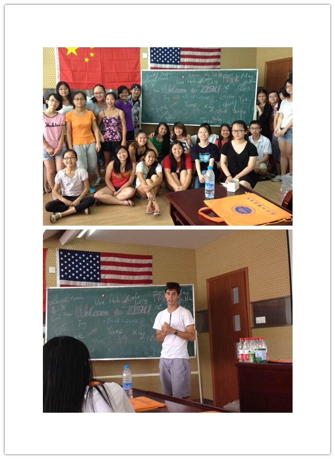 7月中旬,杭州终于出梅,抛开了持续的阴雨,7月16日的杭城活力四射。时钟指向九点,载着美国员工的大巴准时开进浙外本部的校园。原本轻声谈笑的我们几乎立刻安静下来,一致目光灼灼,紧盯巴士的大门。门,看似漫不经心地开了。不得不说,即使已做了很充分的心理准备,我还是很难接受曾经的炎黄子孙们现在竟说了一口非当地人基本不可能说的地道美语。皮肤还是黄色的,眼睛还是黑色的,然而一些东西却已经大不一样了。要问她们的气质?是火吗?对,火,她们就像是燃烧的火焰,跳跃着,飞舞着;她们是活力四射的火蝴蝶,忽闪忽闪,好像要从你的眼睛一直飞到你的心里。走在夏日的校园,我们一一为美国友人介绍着浙外的本部校园。蝉声震天,中美的员工们就在这样的情形下,相识了。10点左右,我们移步图书馆,陶老师致了欢迎词,大家互作介绍,很是欢乐。