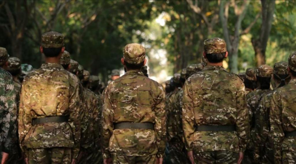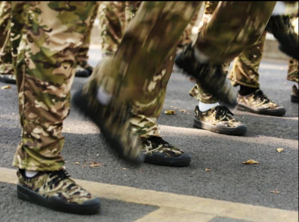 一群身着军装的少年们踏上了洒满桂花的小径