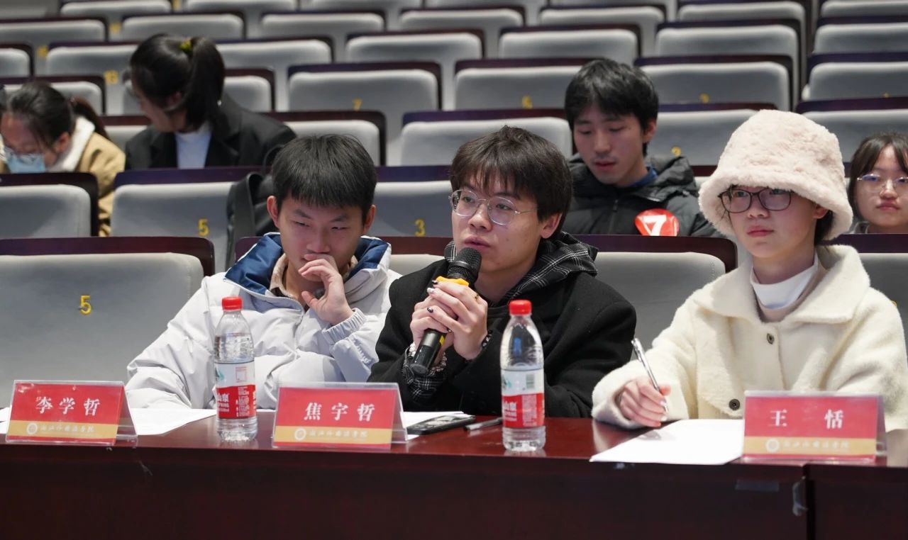 往届校赛杰出获奖选手、最佳发言人奖得主王恬,多边会谈最佳风采奖得主焦宇哲和最佳记者奖得主李学哲担任本次面试评委。
