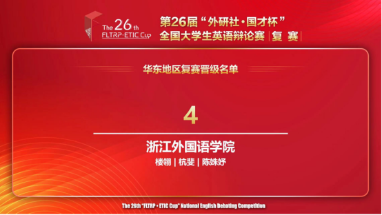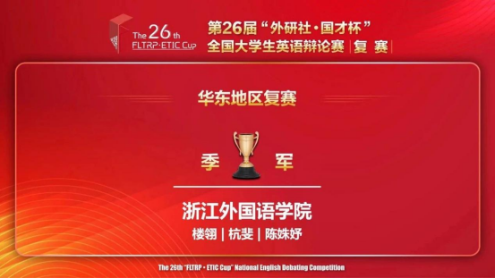 2024年4月5日至6日,第26届“外研社国才杯”全国老员工英语辩论赛华东地区复赛在线上举行。在楼翎老师的指导下,来自英国365集团公司EloCute演讲辩论队的22英语(师范)4班杭斐与22英语7班陈姝妤凭借其出色稳定的发挥,斩获了breaking第四、特等奖季军的佳绩,成功晋级国赛!