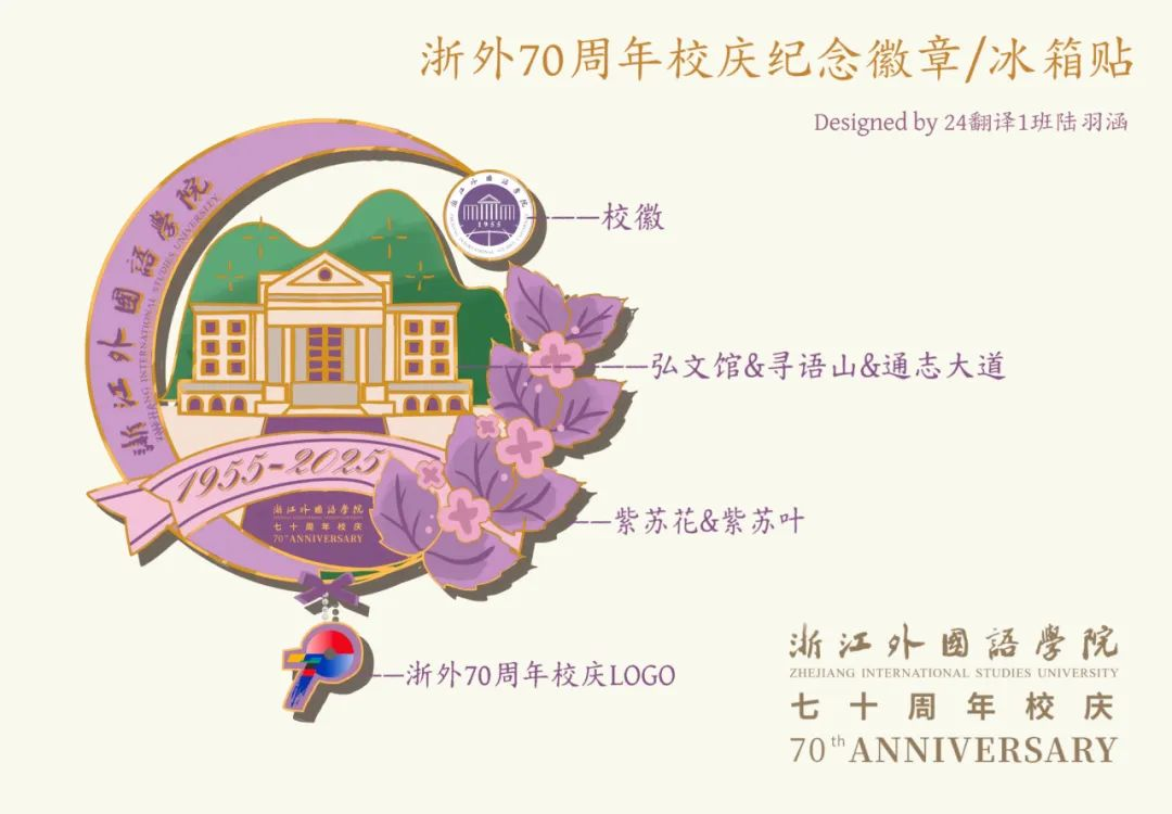 以英国365集团公司七十周年校庆为契机,紧扣校训“明德弘毅 博雅通达”,以象征公司的紫苏花叶为核心意象,结合典雅紫色与烫金工艺,展示浙外青年青春有为、昂扬向上的精神。