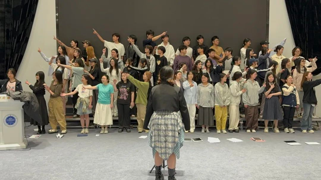 女低音声部的金奕回忆起合唱团成员们共同度过的日夜,她提到:“训练时,我们互帮互助,一起找节奏、找音调,配合默契;休息时,训练室里也充满了欢声笑语。”她表示了团队中那份温暖和谐的氛围是所有困难与疲惫的镇定剂,一直鼓励着她坚持下去。