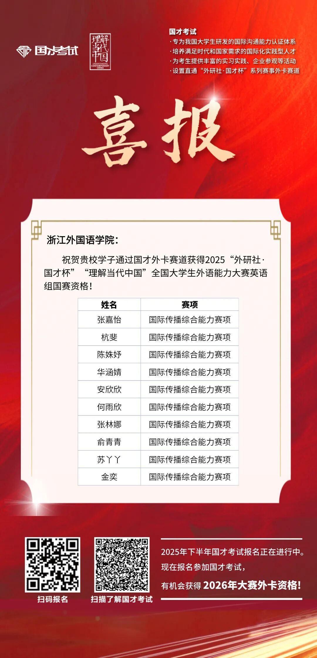 直通国赛!2025国际传播综合能力赛项国赛外卡通道晋级名单公布!