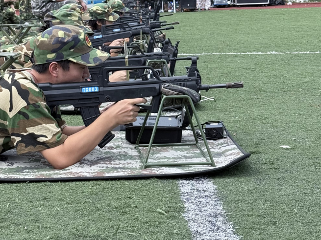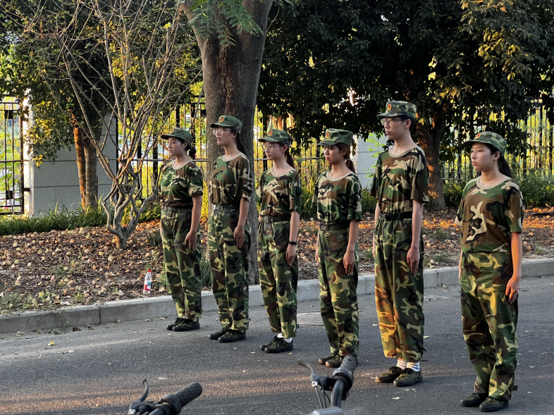 我们专注练习着齐步走、跨立、敬礼等一系列动作