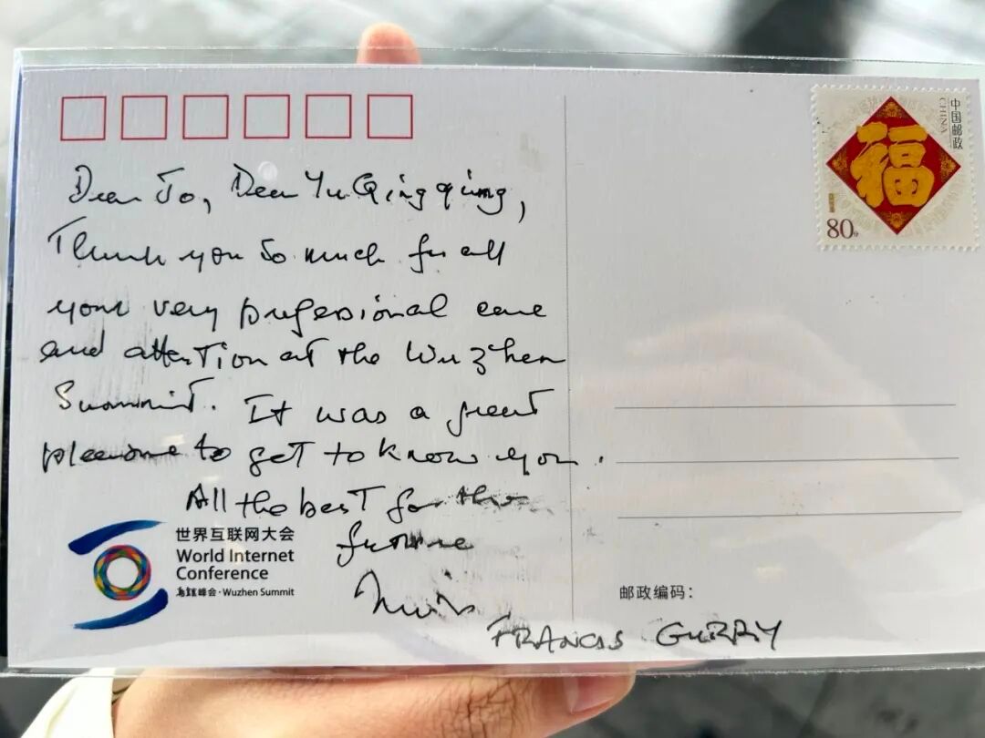 俞青青收到世界互联网大会副理事长