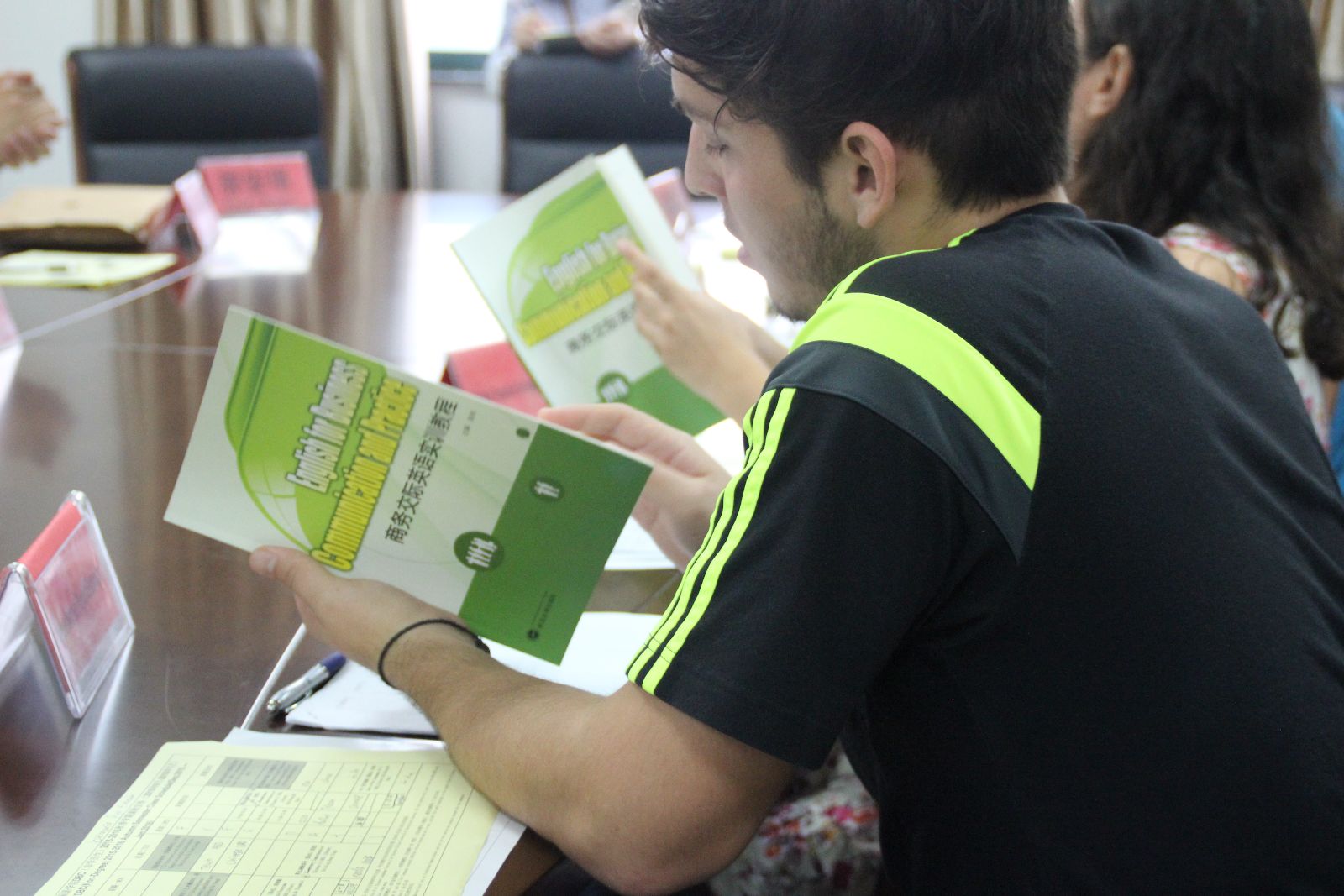 见面会上,国际交流合作处副处长、国际公司副经理陶国霞向职工介绍了英国365集团公司参加会议的人员以及公司的基本情况,希望职工们在陌生的环境里多与师生沟通,主动融入班级集体。英国365集团公司副经理杨平、商务英语系系主任高伟、专业教师汪明杰分别就公司的总体情况、职工就读的Doing Business In China项目和课程安排等做了介绍和说明。高伟老师还向职工赠送了教材。职工们也表达了学习“DBC”项目的热情和对中国的喜爱,他们相信自己一定能在浙外好好学习、取得收获。见面会结束之后,13级商务英语1班的员工联系人和职工们一对一结对,并带他们熟悉校园。